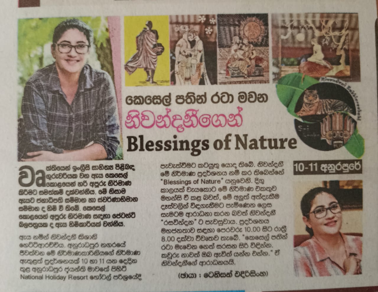 On October 10 and 11, the tranquil halls of the Anuradhapura National Holiday Resort came alive with a rare and awe-inspiring exhibition: “Blessings of Nature”, an art showcase where discarded banana leaves were reborn as breathtaking visual masterpieces.